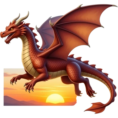 Dragon flying into sunset emoji
