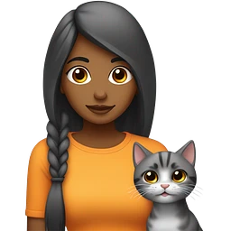 chica pelinegra con un gato gris con subtono naranjo emoji
