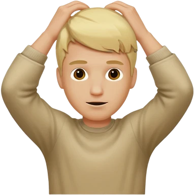 Blonde man with his face covered with two arms going through down left to up right emoji