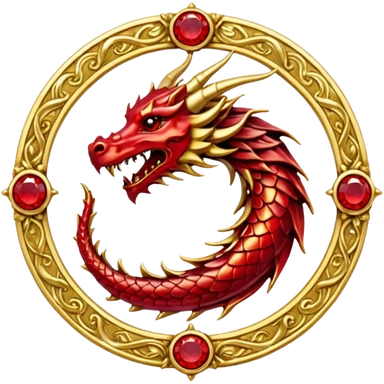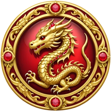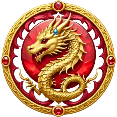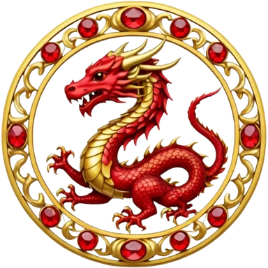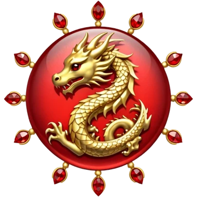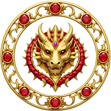 Golden Dragon crest/brosch in a circle with red gems emoji