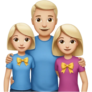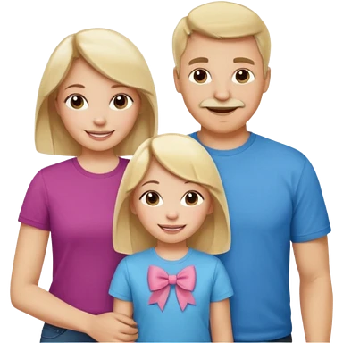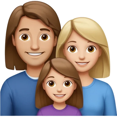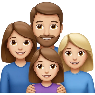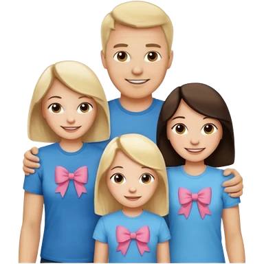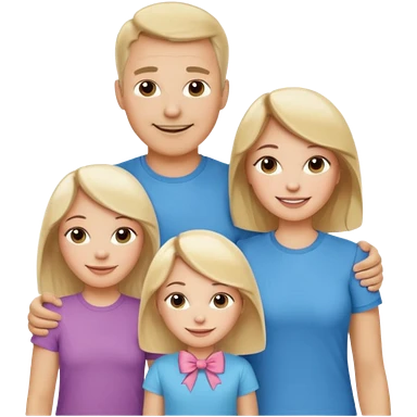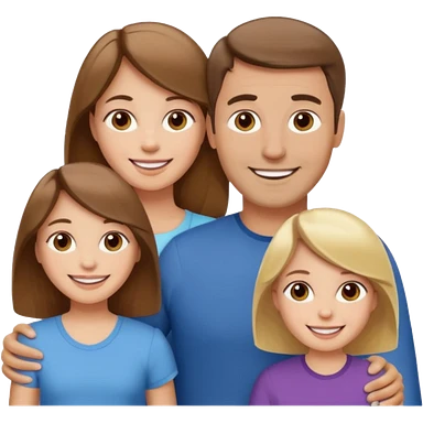 happy white family with one brown hair dad, one brown hair mom, one blonde girl, and one brown hair girl emoji