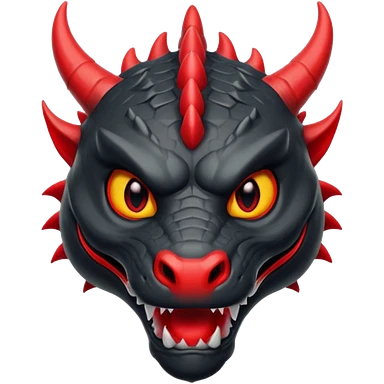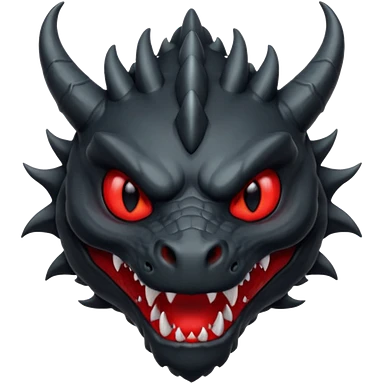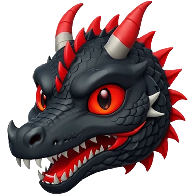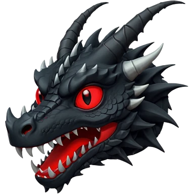 iOS sticker, dark fantasy, dragon head, black skin, red eyes, red mouth, minimal, flat emoji