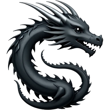 iOS sticker, minimal dragon symbol, monochrome black, dark fantasy emoji