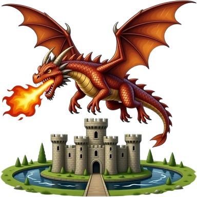 Dragon flying above a castle with a moat emoji | AI Emoji Generator