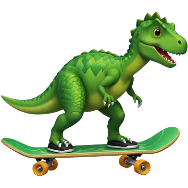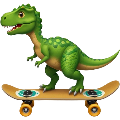 Dinosaur on a skateboard but the skateboard is a circle around the dinosaur emoji