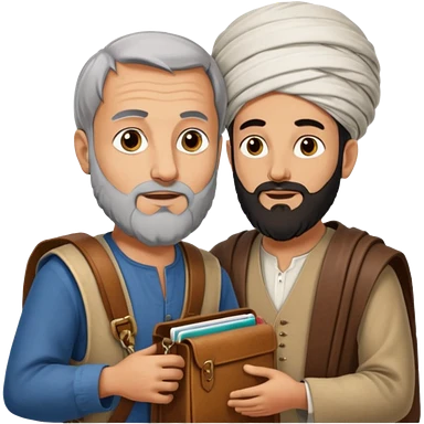 herodotus speaking with a Persian man, who is carrying the mail emoji
