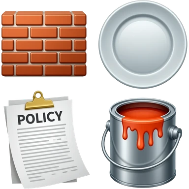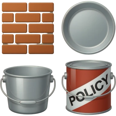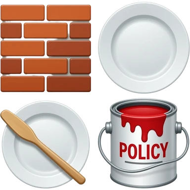 Collage of brick, kitchen ware, policy paper, paint can emoji