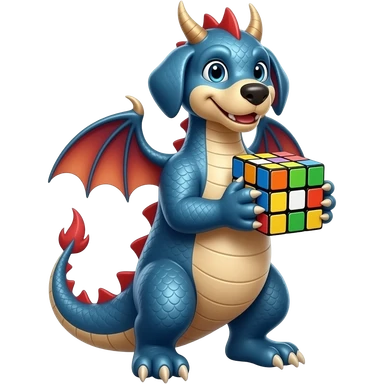 Dragon mixed with dog and a rubix cube emoji