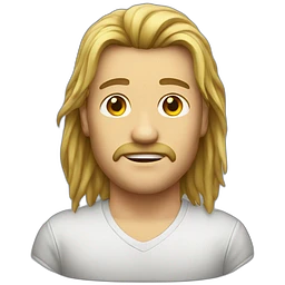 Guy with brown mullet and BLUE EYES and mustache emoji