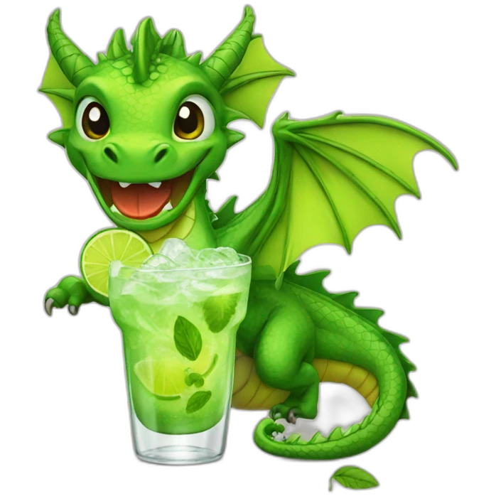 Make a mojito in she style of an emoji in a small glas with only one lime on top and one lime in the glas, not too much mint emoji