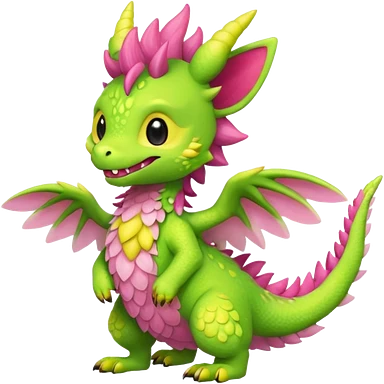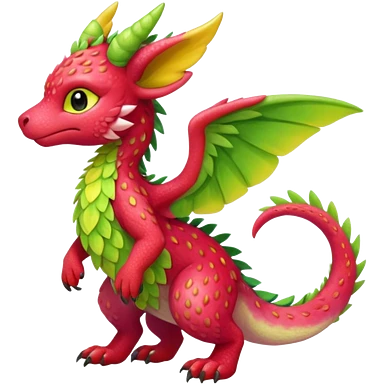 Dragonfruit-Strawberry-Kiwi-themed "Dutch Angel Dragon"-"Vernid"-"Trico"-furry-Fakémon-hybrid-creature (full body) emoji | AI Emoji Generator
