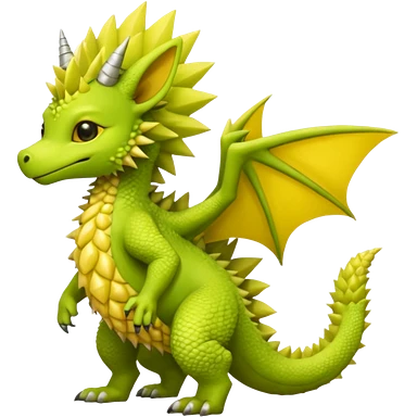 Lime-Mango-Durian-themed "Dutch Angel Dragon"-"Vernid"-"Trico"-furry-Fakémon-hybrid-creature (full body) emoji