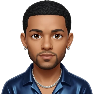 Drake with dark brown eyes, black hair, dark indigo metallic shirt, silver necklace and short earrings emoji