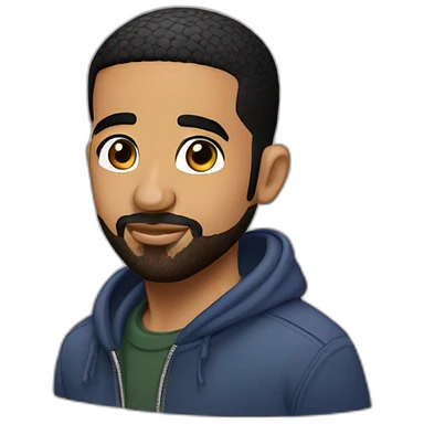 Generate an emoji-style illustration of the rapper Drake’s face, capturing his iconic beard, eyebrows, and signature expression. The style should be simple, colorful, and expressive, resembling a typical emoji emoji