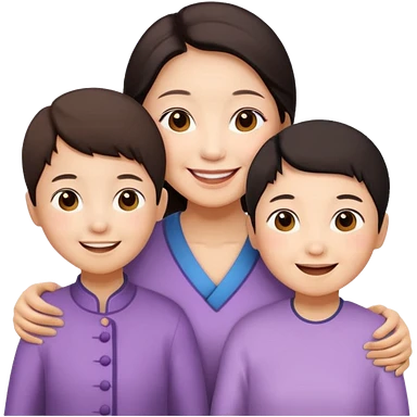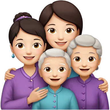 two chinese kids with their mother and grand mother smiling emoji