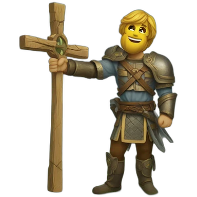 Homme blond tenant une Croix Chrétienne dans ses mains emoji