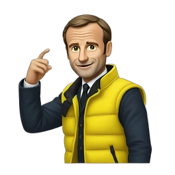 Un poussin jaune avec un casque militaire et une arme a feu et la drapeau français minion emoji
