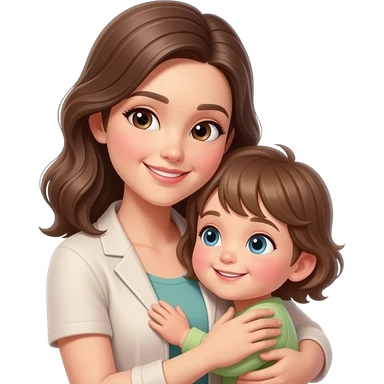 Abrazo de Madre con pelo blanco y gafas y hija con pelo morena sin gafas emoji