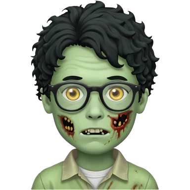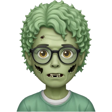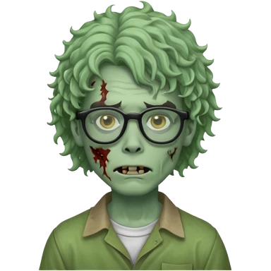 Draw a zombie boy with curly, wavy hair, glasses, and a mullet. emoji
