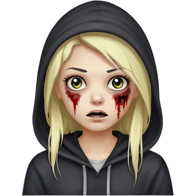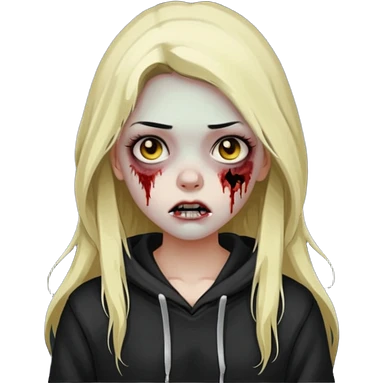 Draw a zombie girl with dark black hair with blonde highlights, long hair, and a hoodie. emoji | AI Emoji Generator