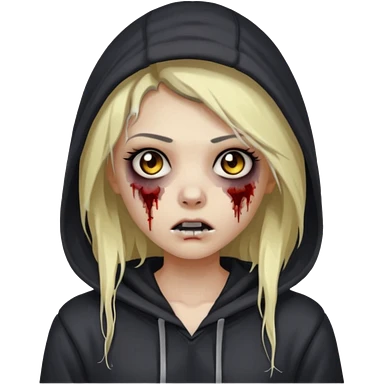 zombie girl with blood and grey long hair with a black hoodie on emoji
