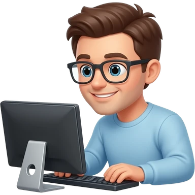 Draw a person smiling while using a computer emoji