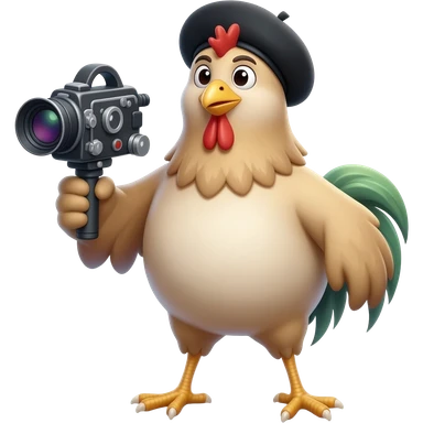 A Chicken holding a movie camera and a black beret emoji