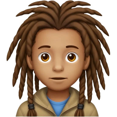 A 12 year old boy with brown eyes and ginger like brown hair with small (but not really small) dreads emoji