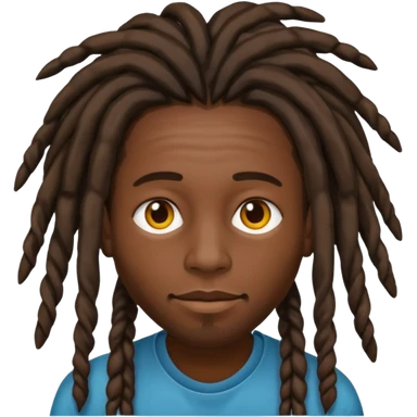 black boy with dreads that are dyed reddish brown at the bottom and are eye length, glasses that are thin and rimless but not circular emoji