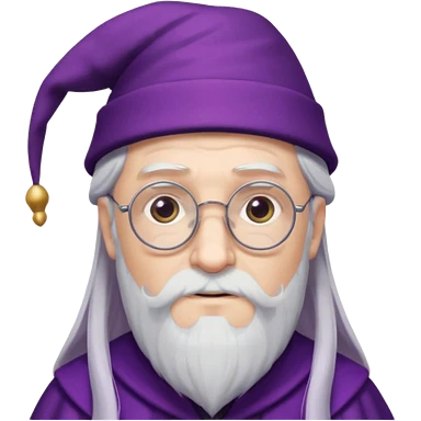 dumbledore, white hair, wear purple magic hat, glasses emoji