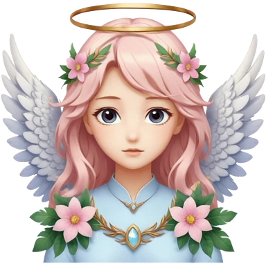 Dreamy divine godly pretty pastel anime flowers feathers hearts wings angelic laurel lady with pretty hair and gorgeous eyes aesthetic emoji