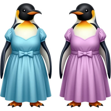 Penguins wearing long dresses emoji