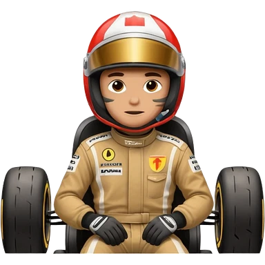 drifting car with tires smoke and a driver with a f1 helmet into the car emoji