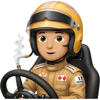 drifting car with tires smoke and a driver with a f1 helmet emoji