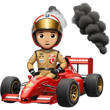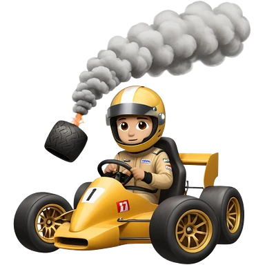 drifting car with tires smoke and a driver with a f1 helmet into the cr emoji