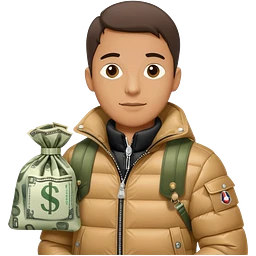 men with moncler jacket with a bag of money emoji