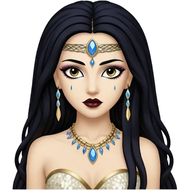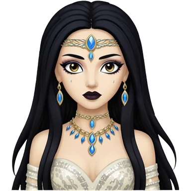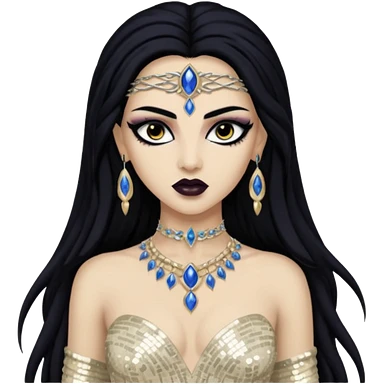 Akasha from Queen of the Damned with long black hair, ivory sequin outfit emoji
