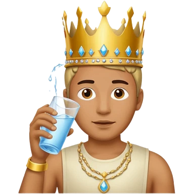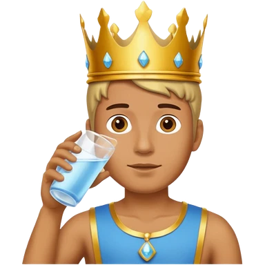 Queen with a purple crown, pale skin, long brown curly hair, drinking wine emoji
