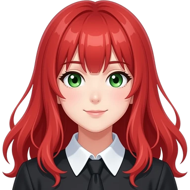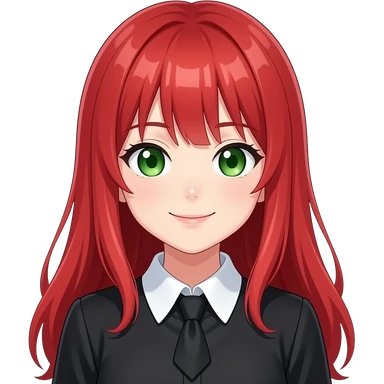 anime girl diagonal smirk red hair green eyes black blouse with white collar emoji