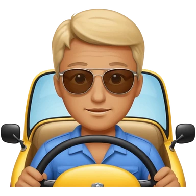 driver with simple face at steering wheel wearing sunglasses emoji