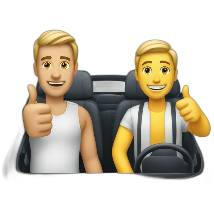 driver and passenger in a car with their thumb up emoji | AI Emoji Generator