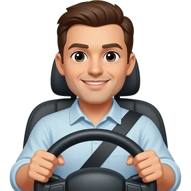 driver with simple face at steering wheel, smiling emoji