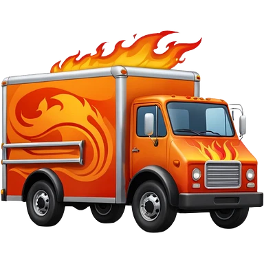 Racing style delivery truck with flames emoji