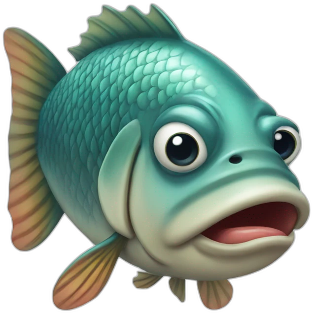 super derpy bright green fish shown from side profile facing right, but with both bulging eyes comically looking at viewer, buck teeth, drooling mouth, flat 2D side view only emoji