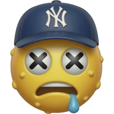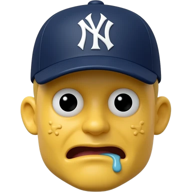 Yellow 3d emoji, New York Yankees hat, drooling, warts, crossed eyes emoji