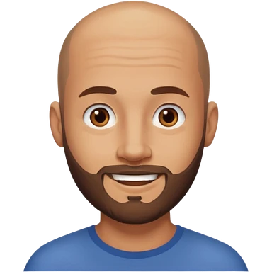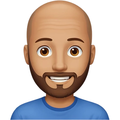 man, shaved head with stubbles, brown eyes, full beard, smiling emoji