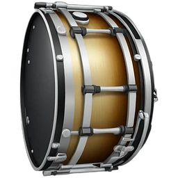 Create a professional, emblem-like emoji representing percussion instruments, including both traditional and folk drums. Feature a snare drum, bass drum, timpani, cymbals, marimba, tambourine, djembe, bongos, cajón, triangle, castanets, and ratchets in a balanced, heraldic composition. Crossed drumsticks at the center symbolize rhythm, while a ribbon of musical notes weaves around the instruments. Use rich gold, mahogany, and silver tones with polished highlights. Add laurel wreaths and subtle engravings for a grand, festive feel. The design should be harmonious, visually complete, and on a transparent background. emoji