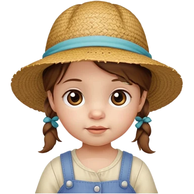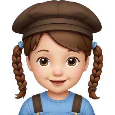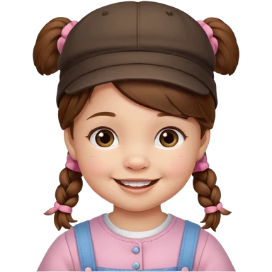 baby girl with brown hair and pigtails with a hat like My Neighbor Totoro movie emoji