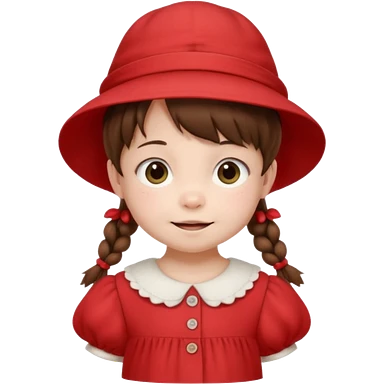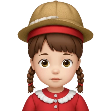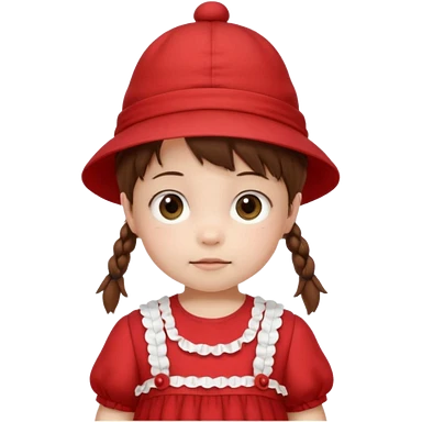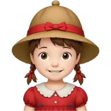 baby girl with brown hair and pigtails with a hat and red dress like My Neighbor Totoro movie emoji