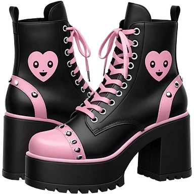 BLACKPINK-inspired gothic shoes, no hearts, black and pink, cute emoji
